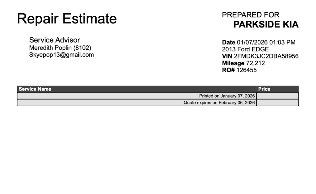 A repair estimate from our service department, should you prefer reconditioning through us