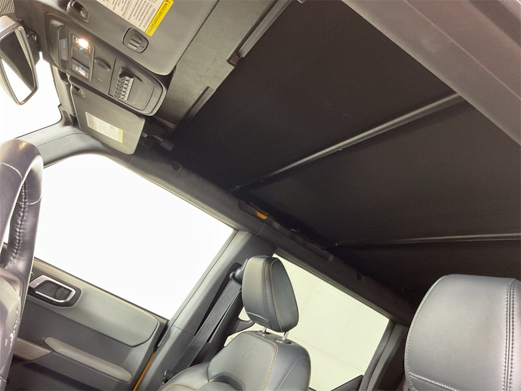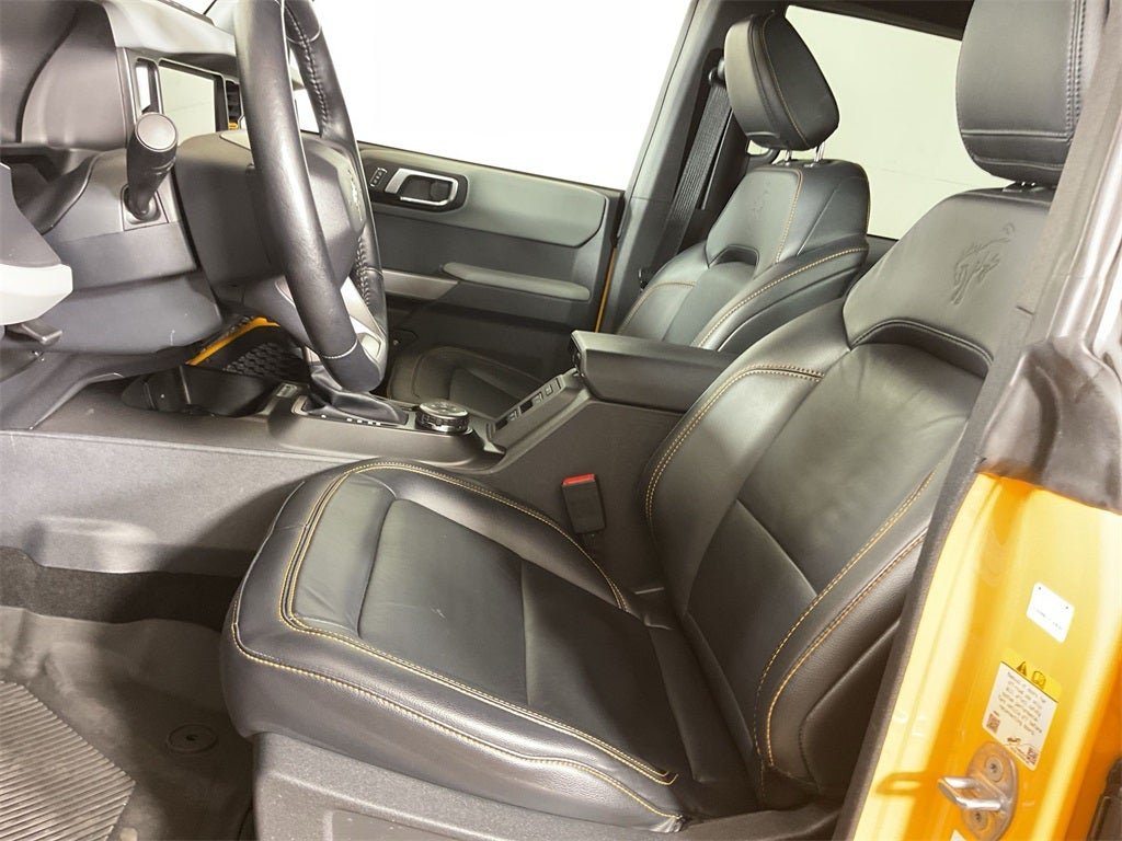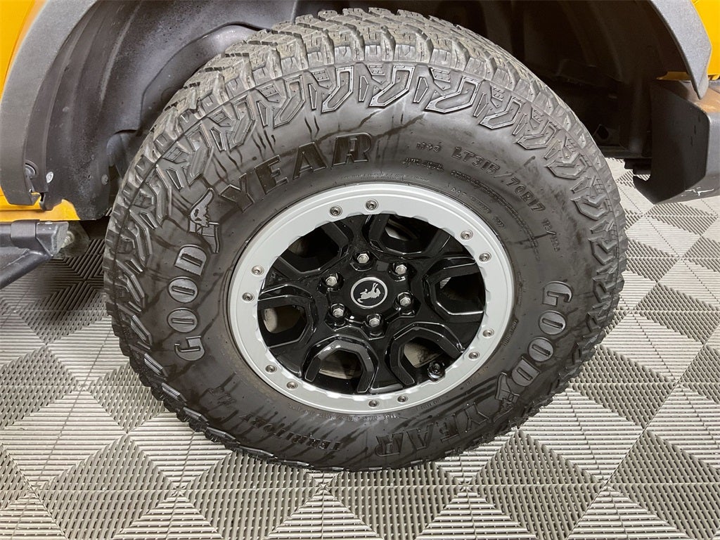 The Optional Features Included on this are: Equipment Group 334A Lux Package (12 LCD Capacitive Touchscreen w/Swipe Capability, 2 Smart Charging USB Ports In Dashboard, 2-Door Intelligent Access w/Lock/Unlock, 360-Degree Camera, Adaptive Cruise Control, Additional Sound Deadening, Ambient Footwell Lighting, Auto-Dimming Interior Rear-View Mirror, Connected Built-In Navigation, Dr & Pass Illuminated Sliding Visor Vanity Mirrors, Dual-Zone Electronic Automatic Temperature Control, Enhanced Voice Recognition, Evasive Steering Assist, Front Parking Sensors, Front Row Heated Seats, Heated Steering Wheel, Information on Demand Panel, Power Outlet - Back Side of Center Floor Console, Radio: B&O Sound System by Bang & Olufsen, Rear Parking Sensors, Sideview Mirrors, Universal Garage Door Opener, and Wireless Charging Pad), Sasquatch Package (High Clearance Fender Flares, High Clearance Suspension, Position-Sensitive Bilstein Shock Absorbers, and Wheels: 17 Black High Gloss-Painted Aluminum), 4-Wheel Disc Brakes, 6 Speakers, ABS brakes, Air Conditioning, Alloy wheels, AM/FM radio: SiriusXM with 360L, AM/FM Stereo, Auto High-Beam Headlamps, Auto High-beam Headlights, BLIS Blind Spot Information System, Body Armor - Protective Moldings (DIO), Brake assist, Cargo Area Rug (DIO), Compass, Delay-off headlights, Driver door bin, Driver vanity mirror, Dual front impact airbags, Dual front side impact airbags, Electronic Stability Control, Emergency communication system: 911 Assist, Exterior Parking Camera Rear, Front & Rear Floor Liners, Front anti-roll bar, Front Bucket Seats, Front Center Armrest, Front reading lights, Front wheel independent suspension, Fully automatic headlights, Heated door mirrors, Illuminated entry, Integrated roll-over protection, Lane-Keeping System, Leather Shift Knob, Low tire pressure warning, Marine Grade Vinyl Bucket Seats, Occupant sensing airbag, Outside temperature display, Overhead airbag, Overhead console, Panic alarm, Passenger door bin, Passenger vanity mirror, Power door mirrors, Power steering, Power windows, Pre-Collision Assist w/Automatic Emergency Braking, Radio data system, Rear-View Camera, Remote keyless entry, Security system, SiriusXM Radio w/360L, Speed control, Split folding rear seat, Steering wheel mounted audio controls, SYNC 4, Tachometer, Telescoping steering wheel, Tilt steering wheel, Traction control, Trip computer, Tube Doors - 4-Door (DIO), Variably intermittent wipers, Voltmeter, Wheel Lock Kit (DIO), and Wheels: 17 Machined Carbonized Aluminum.