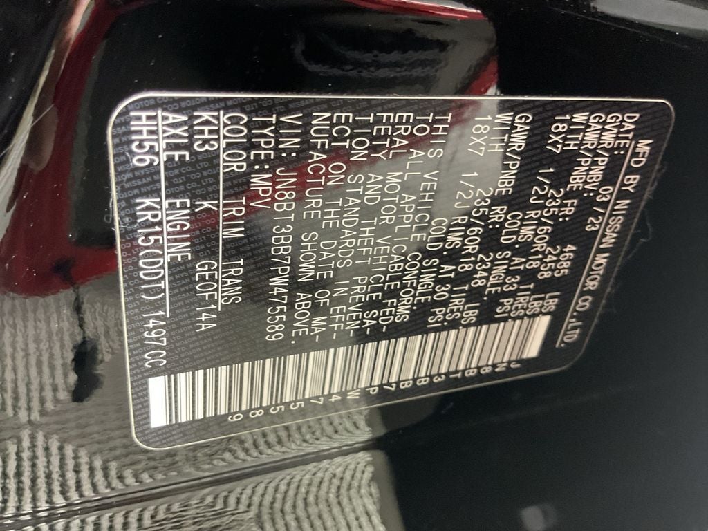 The Optional Features Included on this are: 18 Aluminum Alloy Wheels, 4-Wheel Disc Brakes, 5.604 Axle Ratio, 6 Speakers, ABS brakes, Air Conditioning, Alloy wheels, AM/FM Radio, AM/FM radio: SiriusXM, Auto High-beam Headlights, Automatic temperature control, Black Splash Guards (Set of 4), Brake assist, Bumpers: body-color, Cloth Seat Trim, Delay-off headlights, Driver door bin, Driver vanity mirror, Dual front impact airbags, Dual front side impact airbags, Electronic Stability Control, Emergency communication system: NissanConnect Services, First Aid Kit, Floor Mats w/1-Piece Cargo Area Protector, Four wheel independent suspension, Front anti-roll bar, Front Bucket Seats, Front Center Armrest, Front dual zone A/C, Front reading lights, Fully automatic headlights, Heated door mirrors, Illuminated entry, Knee airbag, Low tire pressure warning, NissanConnect featuring Apple CarPlay and Android Auto, Occupant sensing airbag, Outside temperature display, Overhead airbag, Overhead console, Panic alarm, Passenger door bin, Passenger vanity mirror, Power door mirrors, Power driver seat, Power steering, Power windows, Radio data system, Rear anti-roll bar, Rear Parking Sensors, Rear seat center armrest, Rear side impact airbag, Rear window defroster, Rear window wiper, Remote keyless entry, Speed control, Speed-Sensitive Wipers, Split folding rear seat, Spoiler, Steering wheel mounted audio controls, Tachometer, Telescoping steering wheel, Tilt steering wheel, Traction control, Trip computer, and Variably intermittent wipers.