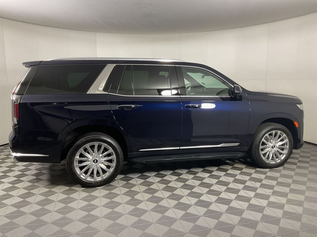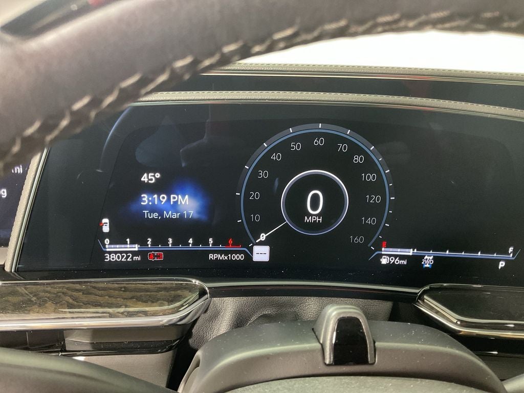 The Optional Features Included on this are: Performance Package (Electronic Limited-Slip Differential, Hitch Guidance w/Hitch View, Integrated Trailer Brake Controller, Magnetic Ride Control Suspension, Smart Trailer Integration Indicator, and Trailer Side Blind Zone Alert), Preferred Equipment Group 1SB (Adaptive Cruise Control, AKG Studio 19-Speaker Audio System, Automatic Seat Belt Tightening, Door Lock & Latch Shields, Enhanced Automatic Emergency Braking, Enhanced Automatic Parking Assist, Glass Breakage Sensor, Heated & Ventilated Driver & Front Passenger Seats, Lane Change Alert w/Side Blind Zone Alert, Mechanical Limited-Slip Differential, Power Panoramic Tilt-Sliding Sunroof, Rear Camera Mirror, Rear Camera Mirror Washer, Rear Cross Traffic Alert, Reconfigurable Full-Color Head-Up Display, Reverse Automatic Braking, Running Board Assist Steps, Theft-Deterrent Alarm System, Vehicle Inclination Sensor, and Vehicle Interior Movement Sensor), Touring Package (Air Ride Adaptive Suspension, Illuminating Front & Rear Sill Plates, and Soft Closing Front & Rear Doors), 16.9 Diagonal OLED Infotainment Screen, 19 Speakers, 2-Presets Memory For Driver Seat Adjuster, 3.23 Axle Ratio, 3rd row seats: split-bench, 4-Way Power Driver Lumbar Seat Adjuster, 4-Way Power Front Passenger Lumbar Seat Adjuster, 4-Wheel Disc Brakes, 8-Way Power Driver Seat Adjuster, 8-Way Power Front Passenger Seat Adjuster, ABS brakes, Air Conditioning, Alloy wheels, AM/FM radio: SiriusXM with 360L, Apple CarPlay/Android Auto, Audio memory, Auto High-beam Headlights, Auto tilt-away steering wheel, Auto-dimming door mirrors, Auto-dimming Rear-View mirror, Automatic temperature control, Brake assist, Bumpers: body-color, Compass, Delay-off headlights, Driver door bin, Driver vanity mirror, Dual front impact airbags, Dual front side impact airbags, Electronic Stability Control, Emergency communication system: OnStar and Cadillac connected services capable, Exterior Parking Camera Rear, Four wheel independent suspension, Front anti-roll bar, Front Bucket Seats, Front Center Armrest w/Storage, Front dual zone A/C, Front reading lights, Fully automatic headlights, Garage door transmitter, HD Radio, Heads-Up Display, Heated door mirrors, Heated Driver & Front Passenger Seats, Heated front seats, Heated rear seats, Heated steering wheel, Illuminated entry, Leather Seating Surfaces w/Mini-Chevron Perf Inserts, Low tire pressure warning, Memory seat, Navigation System, Occupant sensing airbag, Outside temperature display, Overhead airbag, Overhead console, Panic alarm, Passenger door bin, Passenger vanity mirror, Power door mirrors, Power driver seat, Power Liftgate, Power moonroof, Power passenger seat, Power steering, Power windows, Premium Smooth Ride Suspension, Radio data system, Radio: AM/FM w/Navigation, Rain sensing wipers, Rear air conditioning, Rear anti-roll bar, Rear reading lights, Rear Seat Entertainment System, Rear window defroster, Rear window wiper, Remote keyless entry, Security system, SiriusXM w/360L, Speed control, Split folding rear seat, Spoiler, Steering wheel memory, Steering wheel mounted audio controls, Tachometer, Teen Driver, Telescoping steering wheel, Tilt steering wheel, Traction control, Trip computer, Turn signal indicator mirrors, Variably intermittent wipers, Ventilated front seats, Voltmeter, Wheel Locks, Wheels: 22 14-Spoke Alloy w/Polished Finish, and Wireless Apple CarPlay/Wireless Android Auto.