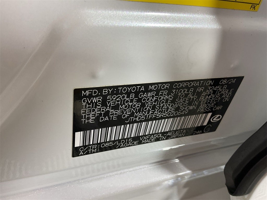 The Optional Features Included on this are: 12 Speakers, 4-Wheel Disc Brakes, ABS brakes, Adaptive suspension, Air Conditioning, All Weather Floor Liners w/Trunk Tray, Alloy wheels, AM/FM radio: SiriusXM, Apple CarPlay/Android Auto, Auto High-beam Headlights, Auto tilt-away steering wheel, Auto-dimming door mirrors, Auto-dimming Rear-View mirror, Automatic temperature control, Brake assist, Bumpers: body-color, Cargo Net (GN), CD player, Compass, Delay-off headlights, Door auto-latch, Driver door bin, Driver vanity mirror, Dual front impact airbags, Dual front side impact airbags, DVD-Audio, Electronic Stability Control, Emergency communication system: Safety Connect (10-year trial), Exterior Parking Camera Rear, Four wheel independent suspension, Front anti-roll bar, Front Bucket Seats, Front Center Armrest, Front dual zone A/C, Front reading lights, Fully automatic headlights, Garage door transmitter: HomeLink, Head restraints memory, Heads-Up Display, Heated door mirrors, Heated front seats, Heated steering wheel, Illuminated entry, Key Gloves (KG), Knee airbag, Leather Shift Knob, Leather steering wheel, Lexus Premium Audio System, Low tire pressure warning, Memory seat, Navigation System, Occupant sensing airbag, Outside temperature display, Overhead airbag, Overhead console, Panic alarm, Passenger door bin, Passenger vanity mirror, Power adjustable front head restraints, Power door mirrors, Power driver seat, Power moonroof, Power passenger seat, Power steering, Power windows, Radio data system, Rain sensing wipers, Rear anti-roll bar, Rear reading lights, Rear seat center armrest, Rear side impact airbag, Rear Window Blind, Rear window defroster, Remote keyless entry, Security system, Speed control, Speed-sensing steering, Speed-Sensitive Wipers, Steering wheel memory, Steering wheel mounted audio controls, Tachometer, Telescoping steering wheel, Tilt steering wheel, Traction control, Trip computer, Turn signal indicator mirrors, Ultrasuede Headliner, Variably intermittent wipers, and Ventilated front seats.
