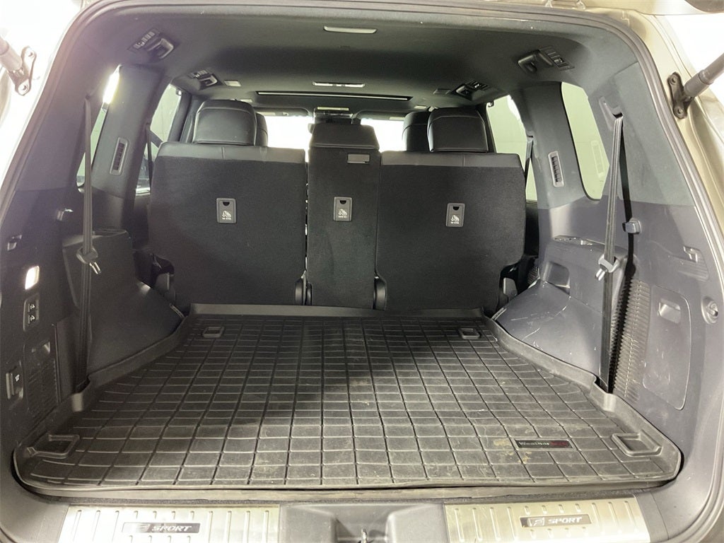 The Optional Features Included on this are: Accessory Package (Z1) (Alloy Wheel Locks, Cargo Net, Carpet Cargo Mat, and Leather Key Gloves), F SPORT Package, 10 Speakers, 3.307 Axle Ratio, 3rd row seats: split-bench, 4-Wheel Disc Brakes, ABS brakes, Active Height Control (AHC), Adaptive suspension, Air Conditioning, All Weather Floor Liners w/Cargo Mat, Alloy wheels, AM/FM radio: SiriusXM, Apple CarPlay/Android Auto, Auto High-beam Headlights, Auto tilt-away steering wheel, Auto-dimming door mirrors, Auto-dimming Rear-View mirror, Automatic temperature control, Brake assist, Bumpers: body-color, Compass, Delay-off headlights, Door auto-latch, Driver door bin, Driver vanity mirror, Dual front impact airbags, Dual front side impact airbags, Electronic Stability Control, Emergency communication system: Safety Connect (up to 10-year trial subscription included), Exterior Parking Camera Rear, Front anti-roll bar, Front Bucket Seats, Front Center Armrest, Front dual zone A/C, Front fog lights, Front reading lights, Front wheel independent suspension, Fully automatic headlights, Garage door transmitter: HomeLink, Headlight cleaning, Heads-Up Display, Heated & Ventilated Front Bucket Seats, Heated door mirrors, Heated front seats, Heated rear seats, Heated steering wheel, Illuminated Cargo Sill, Illuminated entry, Knee airbag, Leather Shift Knob, Leather steering wheel, Low tire pressure warning, Mark Levinson Surround Sound Audio, Memory seat, Navigation System, Occupant sensing airbag, Outside temperature display, Overhead airbag, Overhead console, Panic alarm, Passenger door bin, Passenger vanity mirror, Power door mirrors, Power driver seat, Power Liftgate, Power moonroof, Power passenger seat, Power steering, Power windows, Radio data system, Radio: Lexus Interface, Rain sensing wipers, Rear air conditioning, Rear anti-roll bar, Rear dual zone A/C, Rear reading lights, Rear seat center armrest, Rear side impact airbag, Rear window defroster, Rear window wiper, Reclining 3rd row seat, Remote keyless entry, Security system, Semi-Aniline Leather Seat Trim, Speed control, Speed-sensing steering, Split folding rear seat, Spoiler, Steering wheel memory, Steering wheel mounted audio controls, Tachometer, Telescoping steering wheel, Tilt steering wheel, Traction control, Trip computer, Turn signal indicator mirrors, Variably intermittent wipers, Ventilated front seats, Voltmeter, and Wheels: 22 Forged F SPORT.