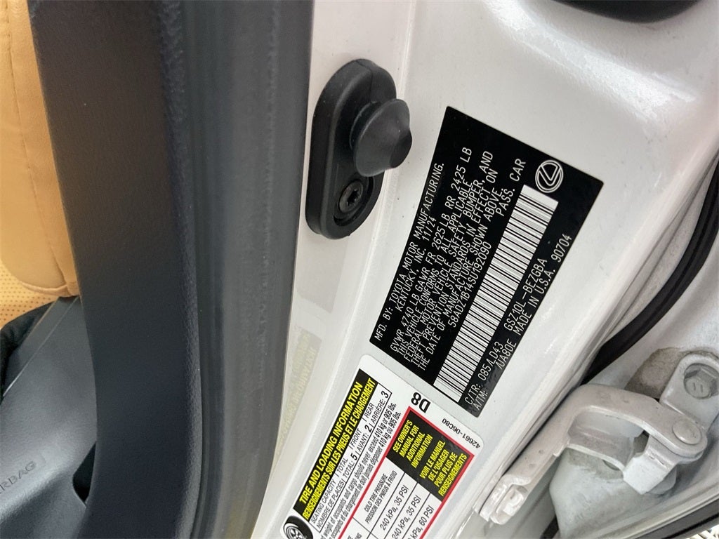 The Optional Features Included on this are: Accessory Package (Z2) (Cargo Net, Carpet Trunk Mat, Key Gloves, Rear Bumper Applique, and Wheel Locks), Premium Package (Heated & Ventilated Seats, Heated Leather 3-Spoke Steering Wheel, Intuitive Parking Assist w/Auto Braking, Lexus Memory System, Parking Support Alert/Brake, Perforated NuLuxe Seat Trim (LD), Power Tilt/Telescoping Steering Wheel, Rain Sensing Wipers, Windshield De-Icer, and Wireless Charger), 10 Speakers, 4-Wheel Disc Brakes, ABS brakes, Air Conditioning, Alloy wheels, AM/FM radio: SiriusXM, Auto High-beam Headlights, Auto-dimming door mirrors, Auto-dimming Rear-View mirror, Automatic temperature control, Brake assist, Bumpers: body-color, Compass, Delay-off headlights, Driver door bin, Driver vanity mirror, Dual front impact airbags, Dual front side impact airbags, Electronic Stability Control, Emergency communication system, Exterior Parking Camera Rear, Four wheel independent suspension, Front anti-roll bar, Front Bucket Seats, Front Center Armrest, Front dual zone A/C, Front Power Seats, Front reading lights, Fully automatic headlights, Garage door transmitter: HomeLink, Hands-Free Power Open/Close Trunk, Heated door mirrors, Illuminated entry, Knee airbag, Leather Shift Knob, Leather steering wheel, Low tire pressure warning, Navigation system: Drive Connect Cloud Navigation (subscription required), Occupant sensing airbag, Outside temperature display, Overhead airbag, Overhead console, Panic alarm, Passenger door bin, Passenger vanity mirror, Perforated NuLuxe Seat Trim, Power door mirrors, Power driver seat, Power moonroof, Power passenger seat, Power steering, Power windows, Radio data system, Radio: Lexus Interface w/8 Touch Screen, Rear anti-roll bar, Rear reading lights, Rear seat center armrest, Rear side impact airbag, Rear window defroster, Remote keyless entry, Security system, Speed control, Speed-sensing steering, Steering wheel mounted audio controls, Tachometer, Telescoping steering wheel, Tilt steering wheel, Traction control, Trip computer, Turn signal indicator mirrors, Variably intermittent wipers, Wheels: 17 Twin-V-Spoke Alloy, Wheels: 18 Split-10-Spoke Two-Tone Alloy, and Wireless Apple CarPlay/Wireless Android Auto.