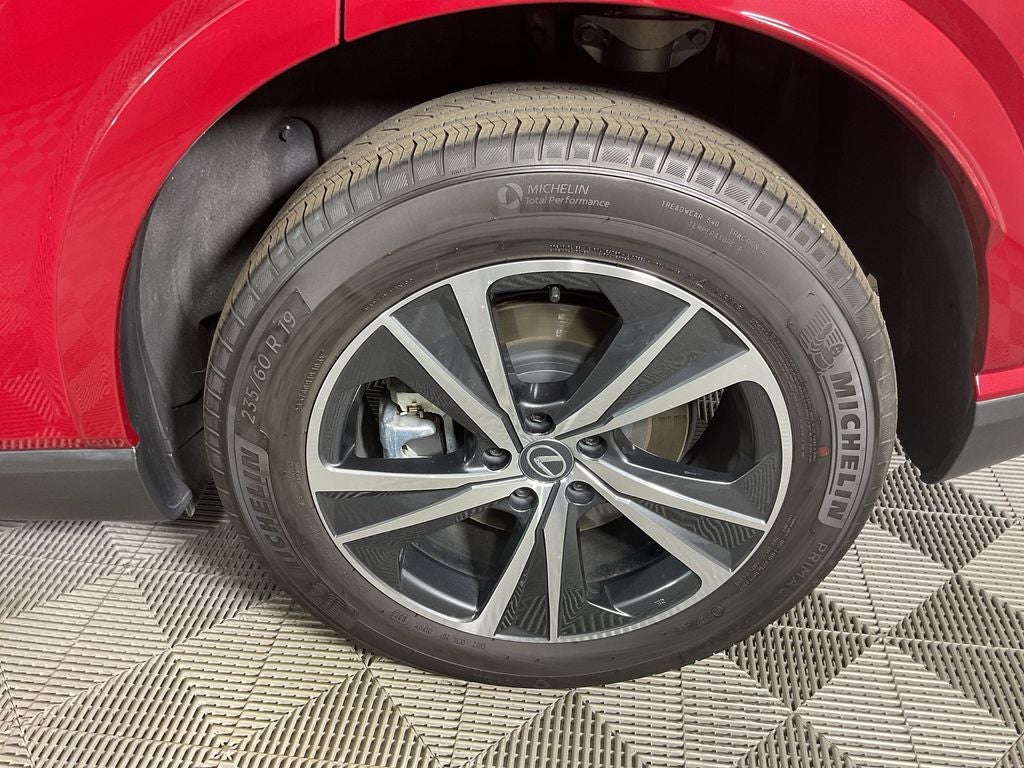 The Optional Features Included on this are: ABS brakes, Active Cruise Control, Alloy wheels, Compass, Electronic Stability Control, Front dual zone A/C, Heated & Ventilated Front Bucket Seats, Heated door mirrors, Heated front seats, Illuminated entry, Low tire pressure warning, Power Liftgate, Power moonroof, Remote keyless entry, Traction control, 12 Speakers, 19 5-Spoke Alloy Wheels, 4-Wheel Disc Brakes, Air Conditioning, AM/FM radio: SiriusXM, Anti-whiplash front head restraints, Auto High-beam Headlights, Auto tilt-away steering wheel, Auto-dimming door mirrors, Auto-dimming Rear-View mirror, Automatic temperature control, Brake assist, Bumpers: body-color, Delay-off headlights, Driver door bin, Driver vanity mirror, Dual front impact airbags, Dual front side impact airbags, Emergency communication system: Safety Connect (10-year trial), Exterior Parking Camera Rear, Four wheel independent suspension, Front anti-roll bar, Front Bucket Seats, Front Center Armrest, Front fog lights, Front reading lights, Fully automatic headlights, Garage door transmitter: HomeLink, Heated steering wheel, Leather Shift Knob, Leather steering wheel, Memory seat, NuLuxe Seat Trim, Occupant sensing airbag, Outside temperature display, Overhead airbag, Overhead console, Panic alarm, Passenger door bin, Passenger vanity mirror, Power door mirrors, Power driver seat, Power passenger seat, Power steering, Power windows, Radio data system, Radio: Lexus Interface w/9.8 Touchscreen Display, Rain sensing wipers, Rear air conditioning, Rear anti-roll bar, Rear reading lights, Rear seat center armrest, Rear side impact airbag, Rear window defroster, Rear window wiper, Security system, Speed control, Speed-sensing steering, Split folding rear seat, Spoiler, Steering wheel memory, Steering wheel mounted audio controls, Telescoping steering wheel, Tilt steering wheel, Trip computer, Turn signal indicator mirrors, Variably intermittent wipers, Ventilated front seats, and Wireless Apple CarPlay/Wireless Android Auto.